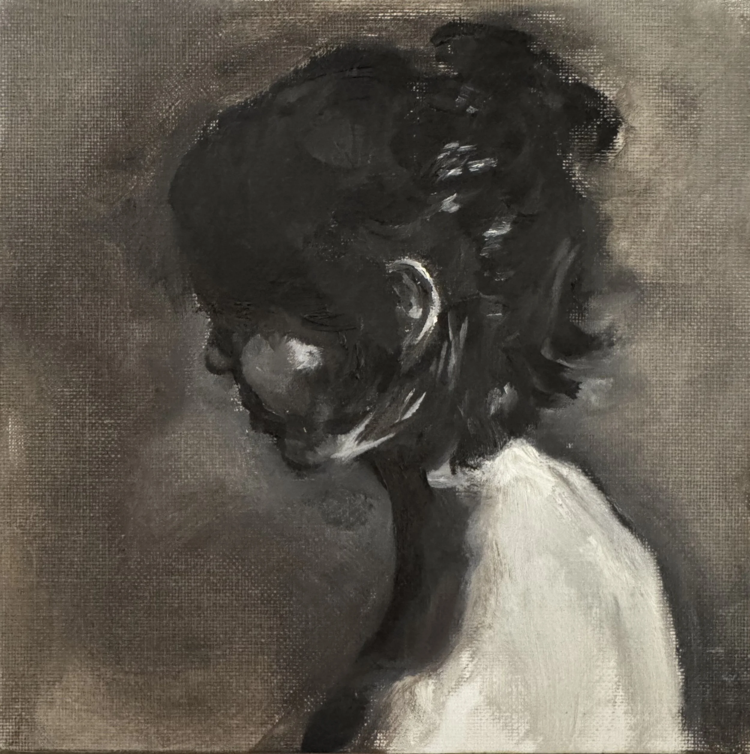Molly is delighted to have launched a new portrait style to her portfolio of portraits for commission: a series of monochrome works in a distinctive size and style. Painted in subtle gradations of light and shadow, these portraits distil the essence of the sitter with striking simplicity and immediacy. Contemporary yet timeless, they offer a refined alternative to her larger oil commissions while carrying the same depth of character and presence.